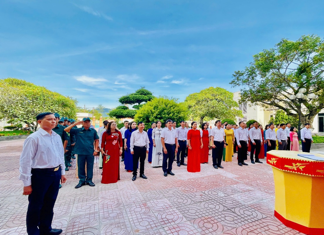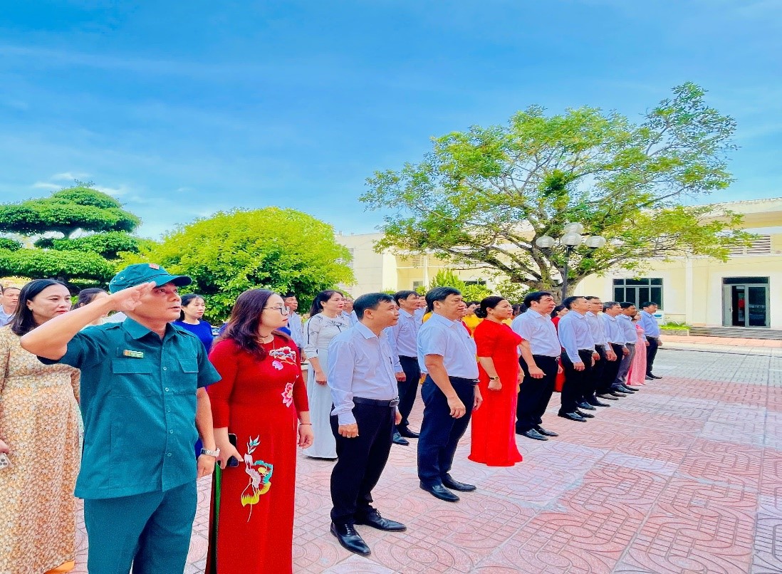 Buổi lễ được tổ chức trang nghiêm với nghi thức Chào cờ, hát Quốc ca.