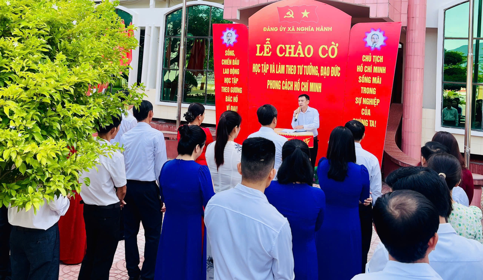 Sáng ngày 06 tháng 10 năm 2025, Đảng ủy xã Nghĩa Hành trang trọng tổ chức Lễ Chào cờ đầu tháng 10.