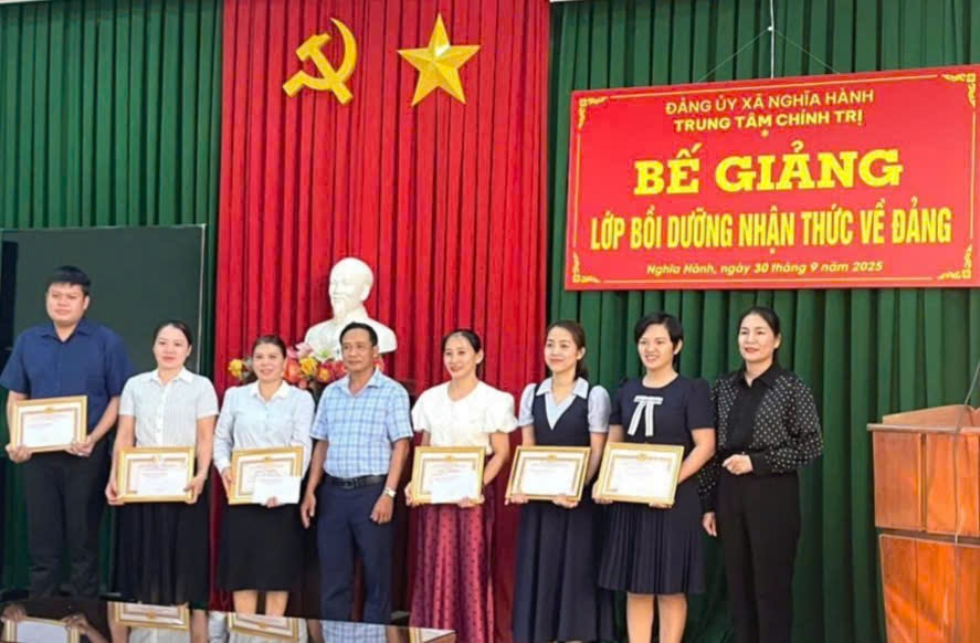 Chiều ngày 30/9/2025, Trung tâm Chính trị xã Nghĩa Hành bế giảng lớp Bồi dưỡng Nhận thức về Đảng - lớp thứ 2 năm 2025.