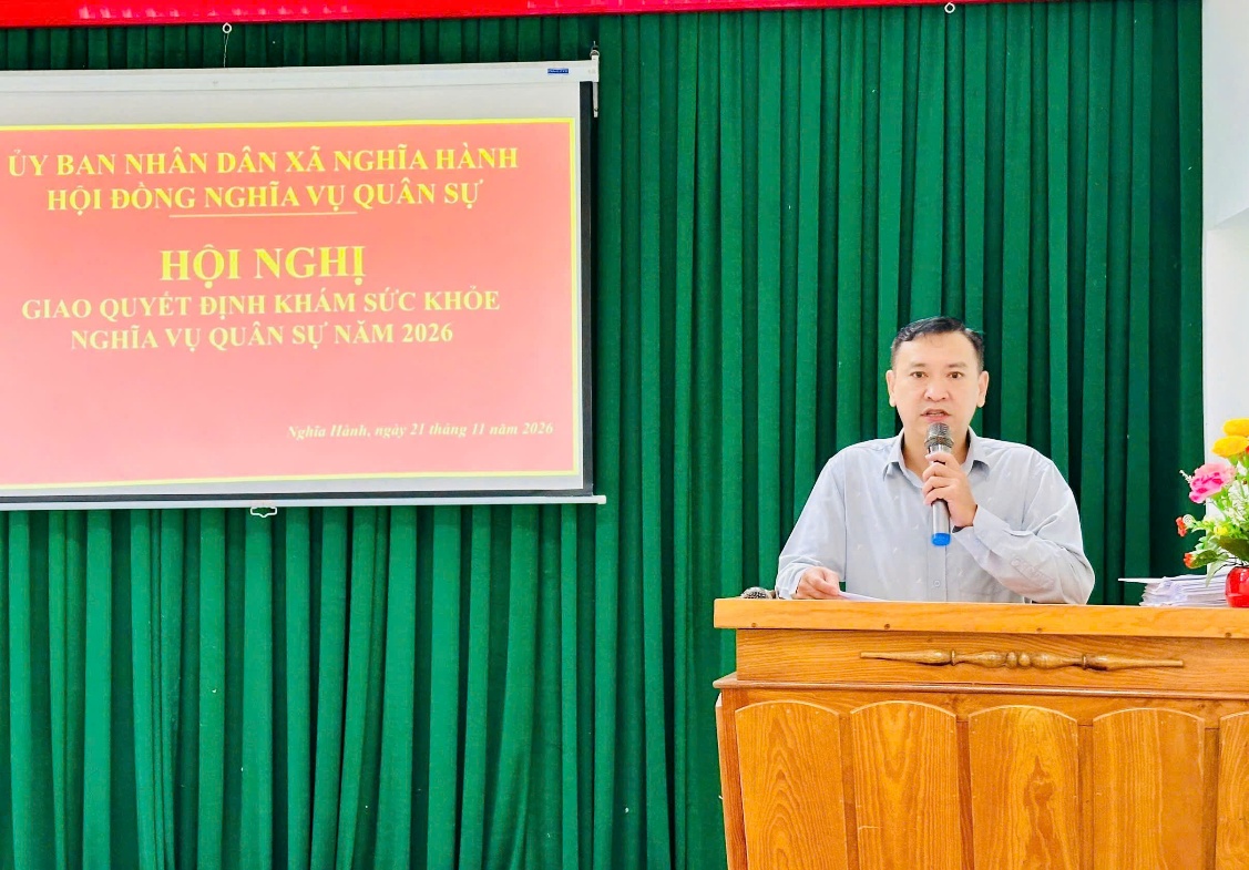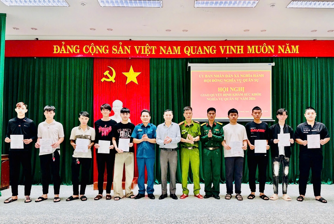 Ngày 21/11/2025, Hội đồng nghĩa vụ Quân sự xã Nghĩa Hành tổ chức Hội nghị trao Quyết định khám sức khoẻ tuyển chọn gọi công dân nhập ngũ vào Quân đội nhân dân và Công an nhân dân năm 2026.