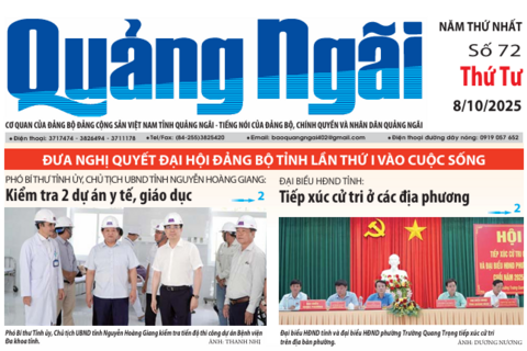Thứ tư, 08/10/2025 | 14:11 A- A A+ | Báo Quảng Ngãi số 72 Thứ 4 ngày 08/10/2025 Giọng nữ miền Bắc Giọng nam miền Bắc Giọng nữ miền Nam Đọc bài Chia sẻ Lưu File đính kèm: Báo Quảng Ngãi số 72 Thứ 4 ngày 08/10/2025