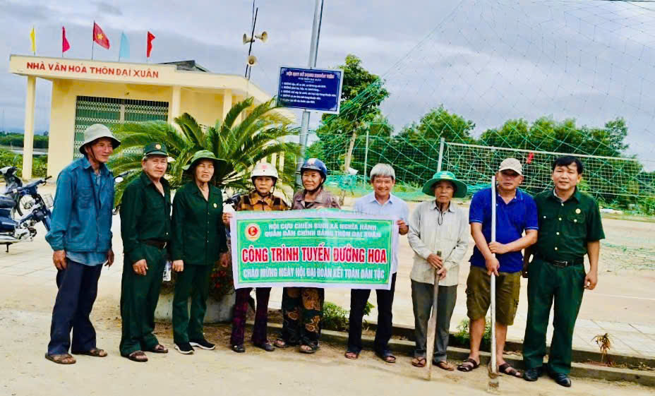 Kỷ niệm 81 năm Ngày thành lập Quân đội Nhân dân Việt Nam (22/12/1944 - 22/12/2025), từ ngày 6 đến ngày 15 tháng 12 năm 2025, Hội Cựu chiến binh xã Nghĩa Hành đã tổ chức dâng hương, chỉnh trang, trồng hoa, dọn vệ sinh tại Nghĩa trang liệt sĩ Hành Thuận; Các chi hội cơ sở tổ chức tọa đàm Truyền thống 81 năm xây dựng, chiến đấu, trưởng thành dưới sự lãnh đạo của cấp ủy Đảng, chính quyền, sự thương yêu, đùm bọc của Nhân dân đối với các thế hệ cán bộ, chiến sỹ lực lượng vũ trang; Trồng tuyến đường hoa dài 400 mét và cải tạo, trồng hoa khuôn viên Nhà văn hóa ở thôn Đại Xuân; Hỗ trợ kinh phí từ nguồn xã hội hóa, ngày công xây dựng nhà Nghĩa tình đồng đội cho 01 hội viên có hoàn cảnh khó khăn, neo đơn...