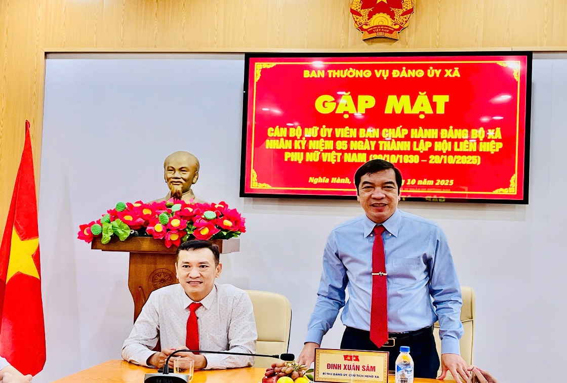 Trong không khí vui tươi, phấn khởi của những ngày tháng Mười, đồng chí Đinh Xuân Sâm - Bí thư Đảng ủy, Chủ tịch HĐND xã đã biểu dương, ghi nhận và trân trọng cảm ơn những đóng góp của toàn thể đội ngũ nữ cán bộ lãnh đạo trên địa bàn xã, đặc biệt là 12 nữ Uỷ viên Ban Chấp hành Đảng bộ xã trong suốt thời gian, nhất là trong thời điểm những tháng đầu thực hiện chính quyền địa phương 2 cấp, các nữ Uỷ viên Ban Chấp hành Đảng bộ đã khắc phục khó khăn, làm tốt công tác lãnh đạo, chỉ đạo, tham mưu góp phần vào kết quả chung của xã trong vận hành thông suốt, ổn định bộ máy mới.