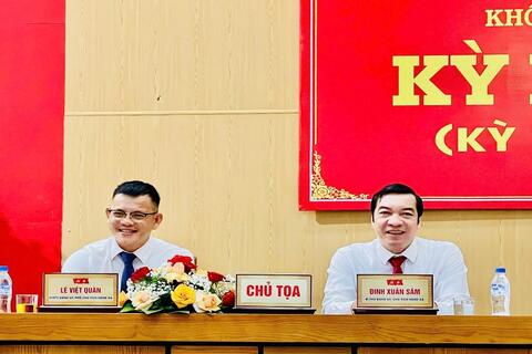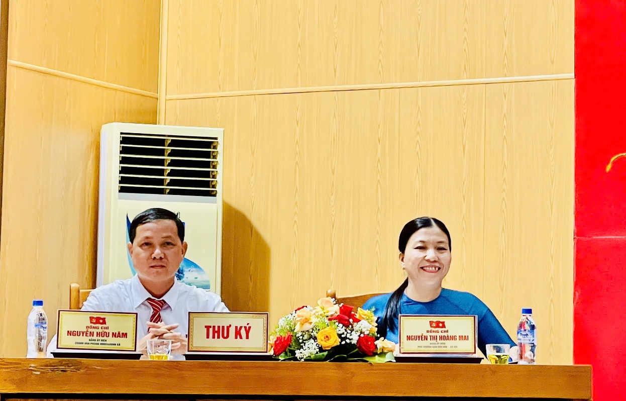 Đồng chí Đinh Xuân Sâm - Bí thư Đảng ủy, Chủ tịch HĐND xã và đồng chí Lê Việt Quân - Phó Chủ tịch HĐND xã chủ tọa kỳ họp.