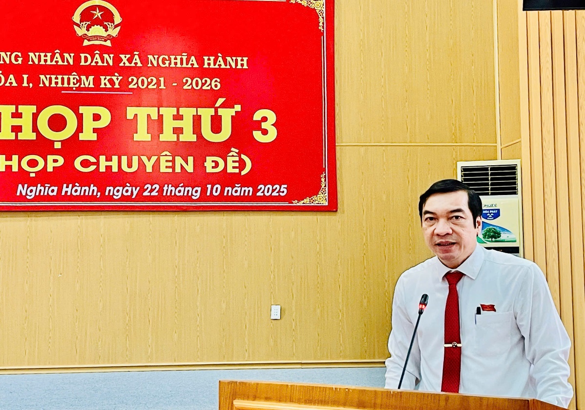 Sáng 22.10.2025, HĐND xã Nghĩa Hành khóa I, nhiệm kỳ 2021-2026 tổ chức kỳ họp lần thứ 3 (kỳ họp chuyên đề) để thông qua các nội dung thuộc thẩm quyền.