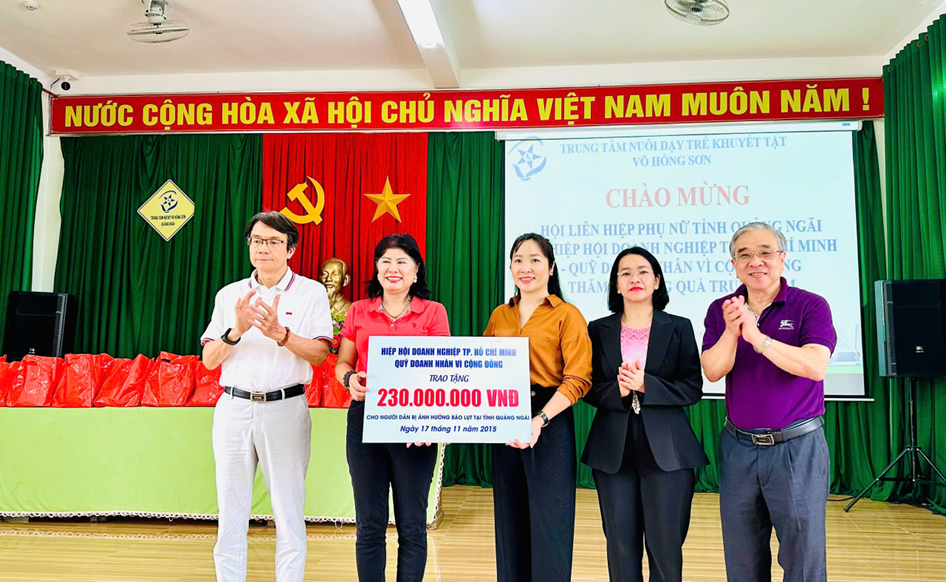 Dịp này, Hiệp Hội doanh nghiệp TP.Hồ Chí Minh - Quỹ Doanh nhân vì cộng đồng đã trao tặng 230 triệu đồng thông qua Hội LHPN tỉnh để hỗ trợ người dân trên địa bàn tỉnh bị ảnh hưởng do bão lũ gây ra.