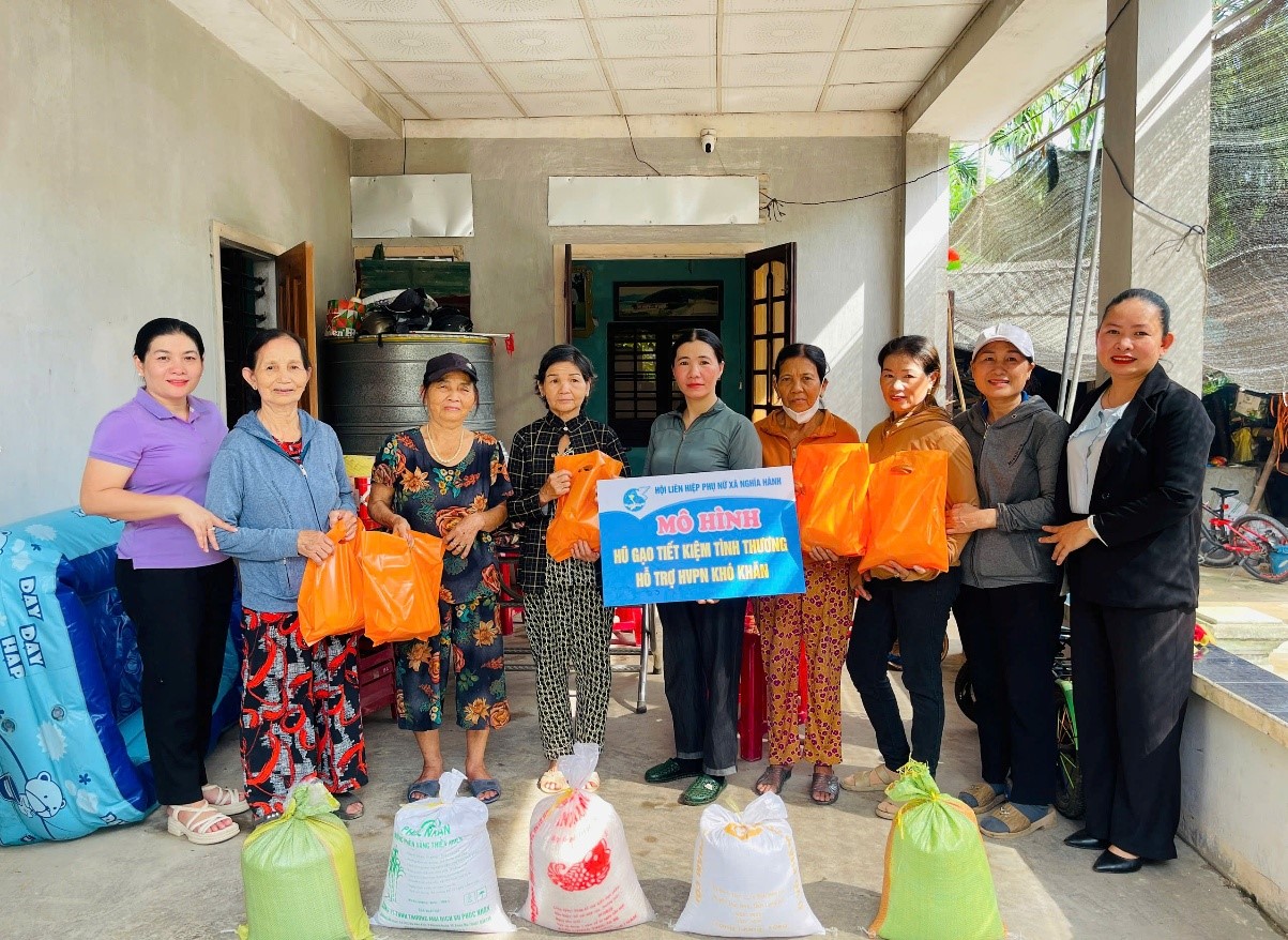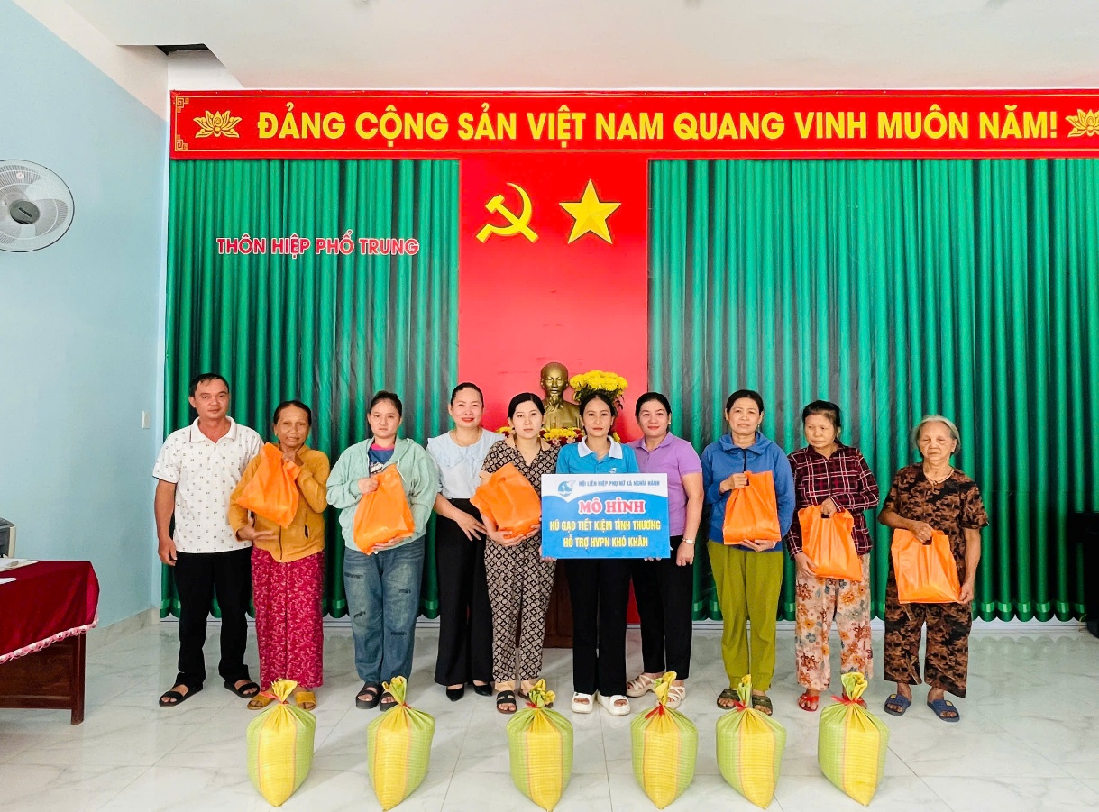 Sáng cùng ngày, lãnh đạo Hội LHPN xã Nghĩa Hành đã đến thăm, tặng quà cho 17 hội viên phụ nữ và người già neo đơn, hoàn cảnh khó khăn ở 2 thôn Hiệp Phổ Bắc và Hiệp Phổ Trung (mỗi phần quà 10 kg gạo, đường, bột ngọt); gạo và kinh phí mua nhu yếu phẩm trích từ quỹ mô hình “Hũ gạo tiết kiệm” của Hội LHPN xã tại 3 máy xay xát gạo trên địa bàn xã.