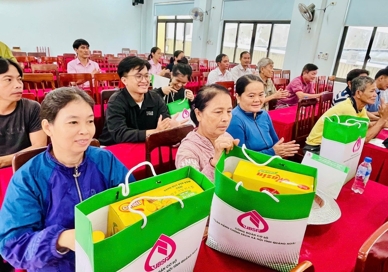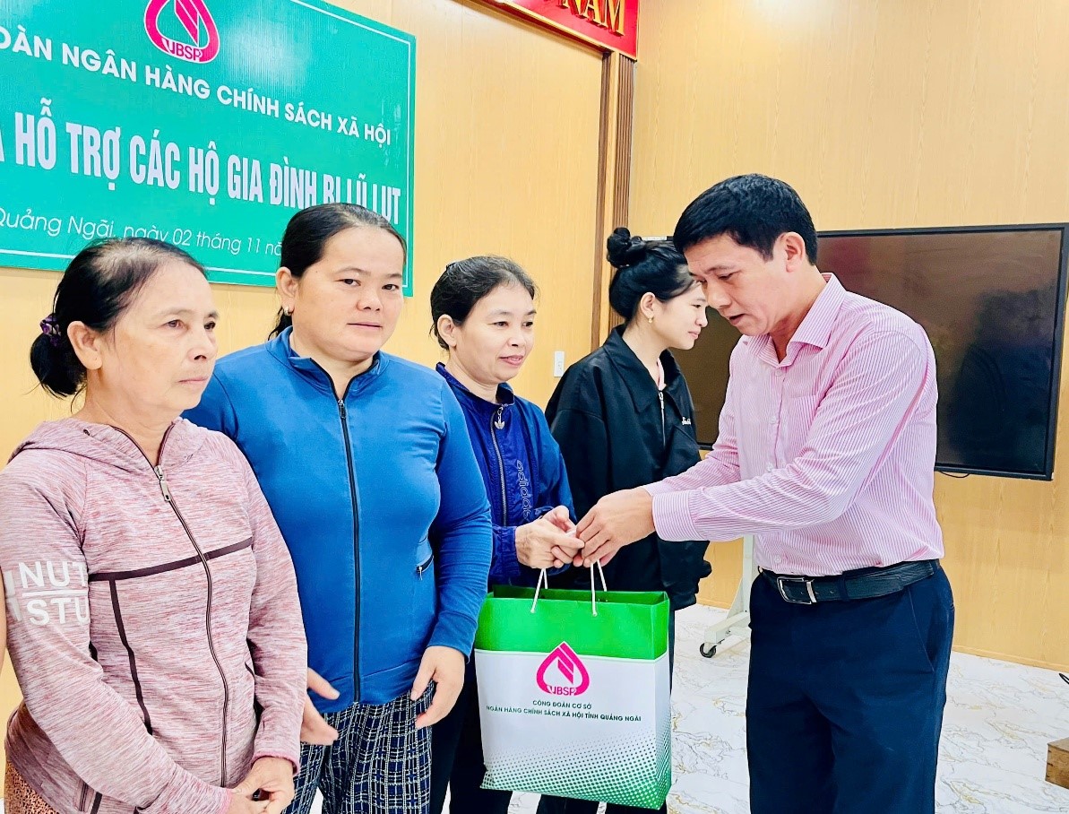 Cùng với thực hiện nhiệm vụ tín dụng chính sách, suốt những năm qua Chi nhánh Ngân hàng CSXH tỉnh Quảng Ngãi luôn quan tâm, kịp thời chung tay, chia sẻ cùng bà con vùng lũ, hộ có hoàn cảnh khó khăn góp phần cùng các địa phương trong tỉnh thực hiện tốt công tác an sinh xã hội, giảm nghèo bền vững.