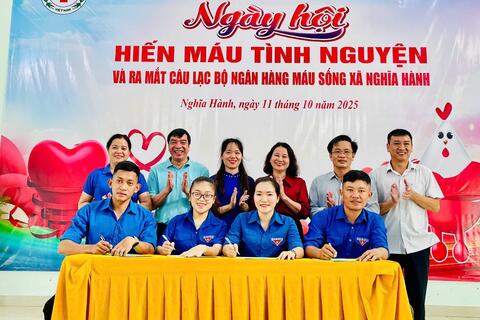 Trong khuôn khổ Ngày hội hiến máu tình nguyện “Sẻ chia giọt máu hồng”, xã Nghĩa Hành tổ chức ra mắt Câu lạc bộ Ngân hàng máu sống, với 25 thành viên ban đầu. Tại buổi lễ thành viên câu lạc bộ cam kết trở thành điểm tựa tin cậy cho những người bệnh cần máu, là nơi lan tỏa, chia sẻ yêu thương trong cộng đồng, xã hội.