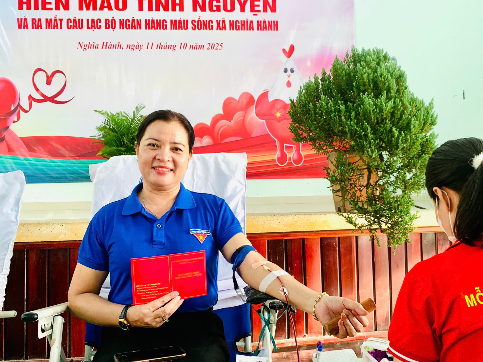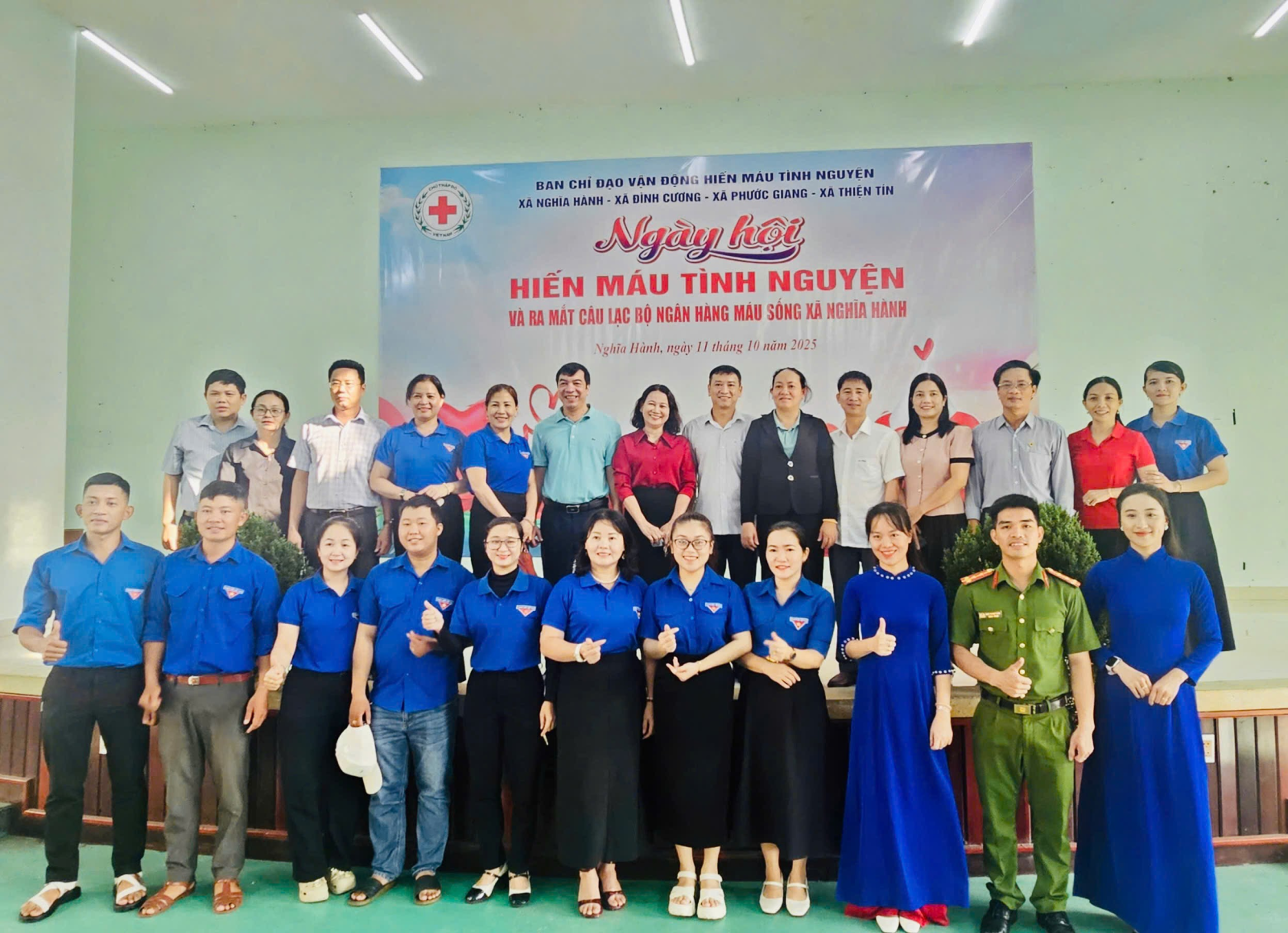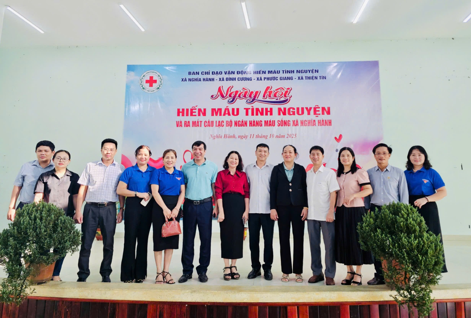 Sáng 11.10.2025, xã Nghĩa Hành phối hợp với các xã (thuộc huyện Nghĩa Hành cũ) Đình Cương, Phước Giang, Thiện Tín và khoa Huyết học Truyền máu - Bệnh viện Đa khoa tỉnh tổ chức Ngày hội Hiến máu tình nguyện “Sẻ chia giọt máu hồng” năm 2025 và ra mắt Câu lạc bộ Ngân hàng máu sống xã Nghĩa Hành.