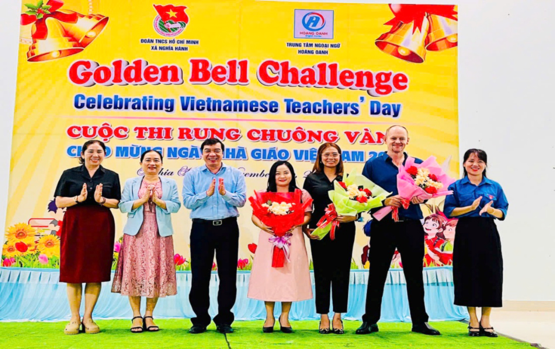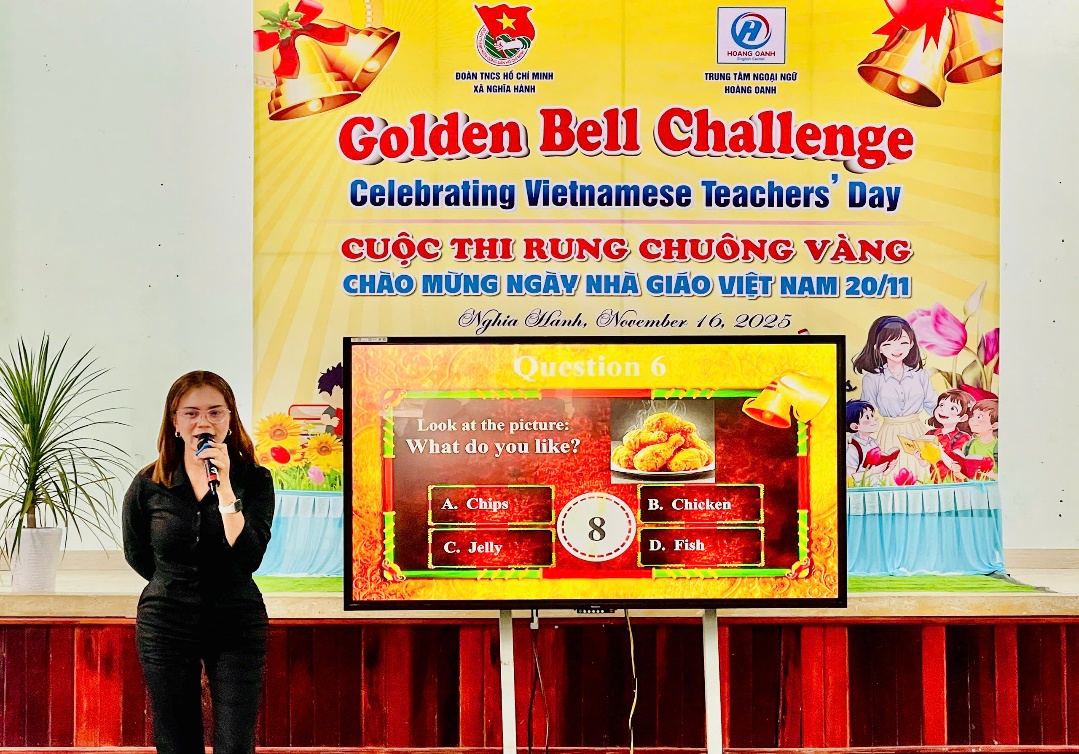 Sáng 16/11/2025, tại Nhà thi đấu -Trung tâm Cung ứng dịch vụ công xã, Đoàn xã Nghĩa Hành phối hợp với Trung tâm Ngoại ngữ Hoàng Oanh tổ chức cuộc thi Rung chuông vàng tiếng Anh với chủ đề “Vietnamese Teachers’Day”, chào mừng kỷ niệm 43 năm ngày Nhà giáo Việt Nam (20/11/1982 – 20/11/2025).