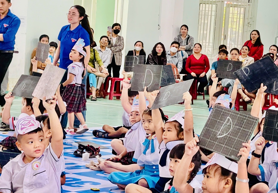 Có 120 thí sinh là học sinh từ khối lớp 1 đến lớp 5 của 03 Trường Tiểu học trên địa bàn xã tham gia cuộc thi. Thí sinh thực hiện 03 phần thi gồm: Phần thứ nhất dành cho các em học sinh khối lớp 1, phần thứ 2 dành cho các em học sinh khối lớp 2 và 3 và phần thứ 3 dành cho các em học sinh khối lớp 4 và 5. Nội dung các câu hỏi liên quan đến ngày Nhà giáo Việt Nam 20 tháng 11, chương trình sách giáo khoa Tiểu học.